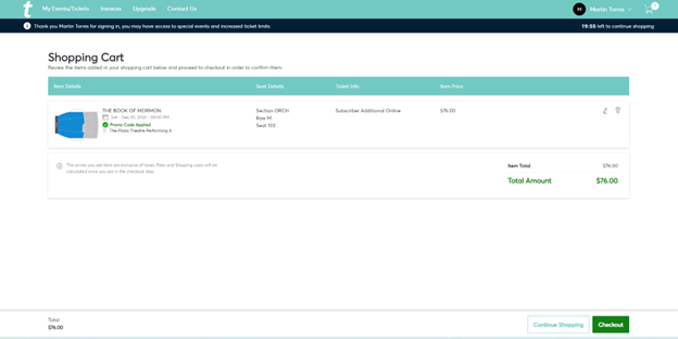 6. Check the event, date, time and seats selected and click on CHECKOUT.