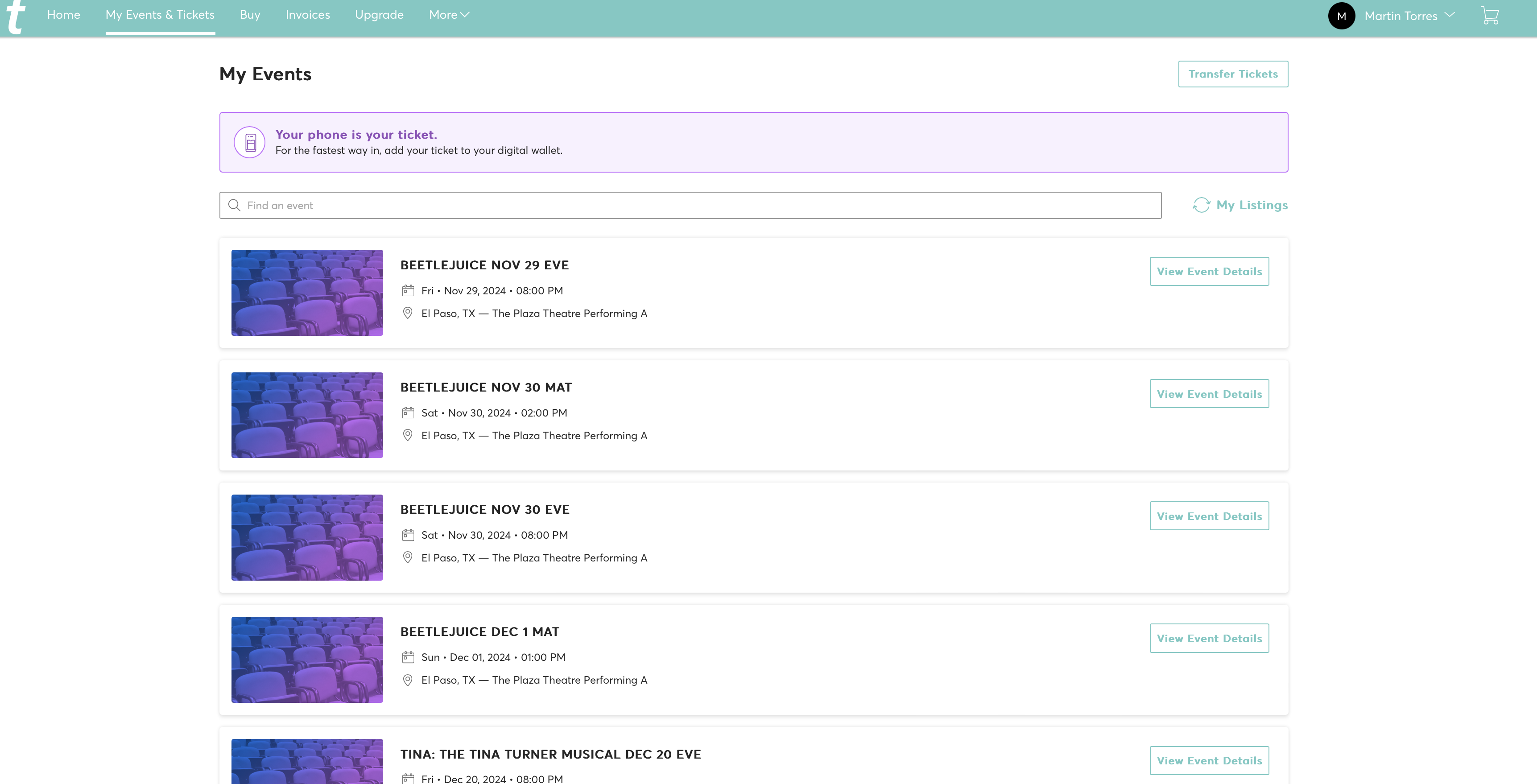 6. Click on SELECT EVENT next to the performance date/time desired.
